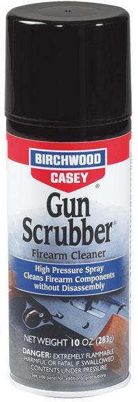Cleaning your firearm just got a whole lot easier and faster thanks to Birchwood Casey’s Gun Scrubber® Firearm Cleaner. Gun Scrubber® Firearm Cleaner is a pressurized fast evaporating firearm cleaner that cleans internal metal firearm parts and firearms effectively. While safe for firearm usage the solvent may harm finished surfaces plastics laminates composites rubber grips or other materials used in the construction of today’s firearms. Always test in an inconspicuous area to ensure product will not harm