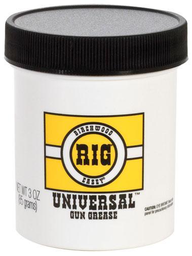 A thin film of RIG� Universal? Gun Grease will help keep your firearms rust-free. One thoroughapplication of RIG Universal Gun Grease inside and out will protect your rifle handgun shotgunor muzzleloader against rust and corrosion. RIG Universal Gun Grease is a superior firearmlubricant and preservative.