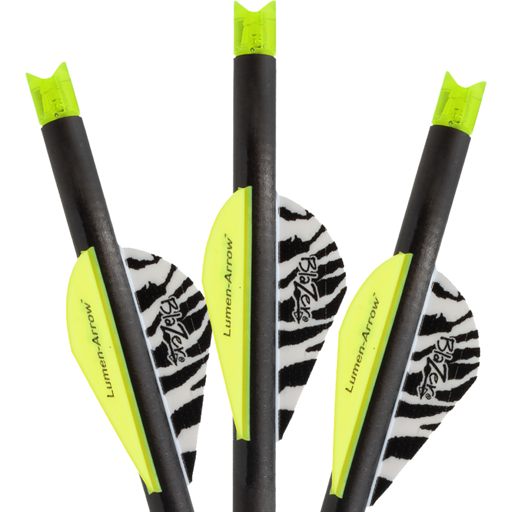 Carbon crossbow bolts fletched with 2? Bohning Blazer Vanes and equipped with green Lumenok lighted nocks. Available in 20? (338 gr.) and 22? (345 gr.) Weights do not include points.