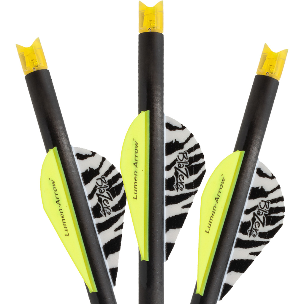 100 percent carbon crossbow bolt with Lumenok lighted nocks installed. Bolts are squared on the nock end to ensure proper functioning of the lighted nock. Factory fletched with 2″ Blazer vanes. Length: 20″. Includes brass inserts. Weight: 338 gr. (without point).