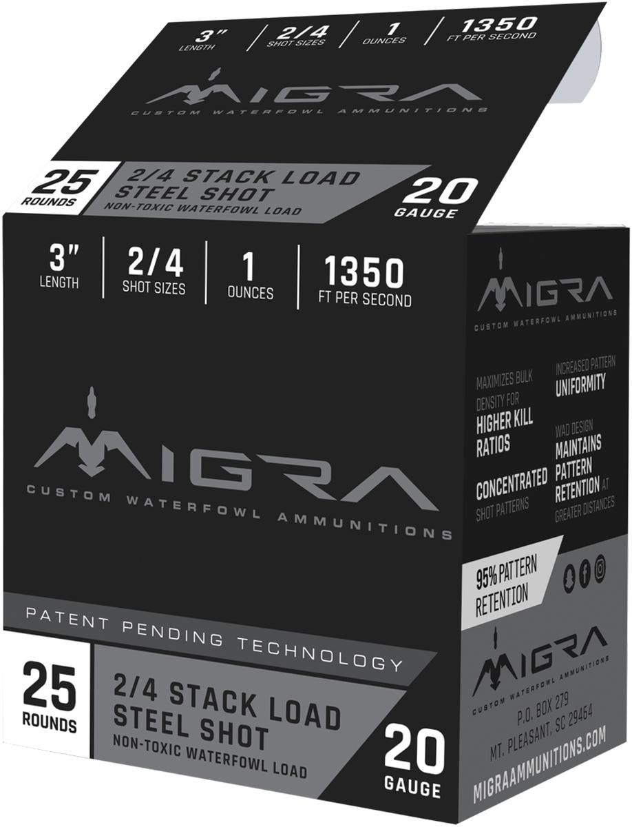 Migra Waterfowl Steel Shot Shotshell 20 ga 3″ 1 oz 1350 fps #2 #4 25-ct