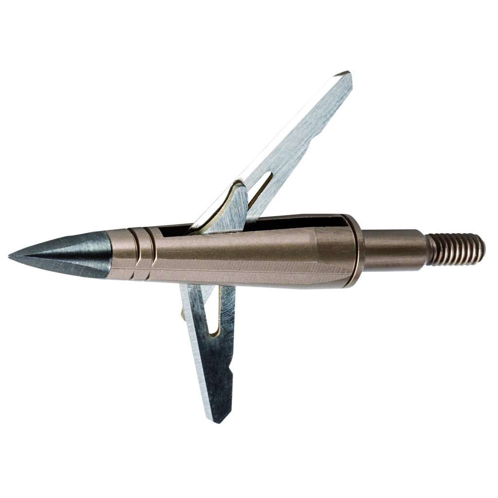 Two blade rear-deploying expandable broadhead that is designed for ultra-high speed bows and crossbows. Simple and rugged design for all hunting conditions. Blades will never open in flight. 1 7/8? cutting diameter.
