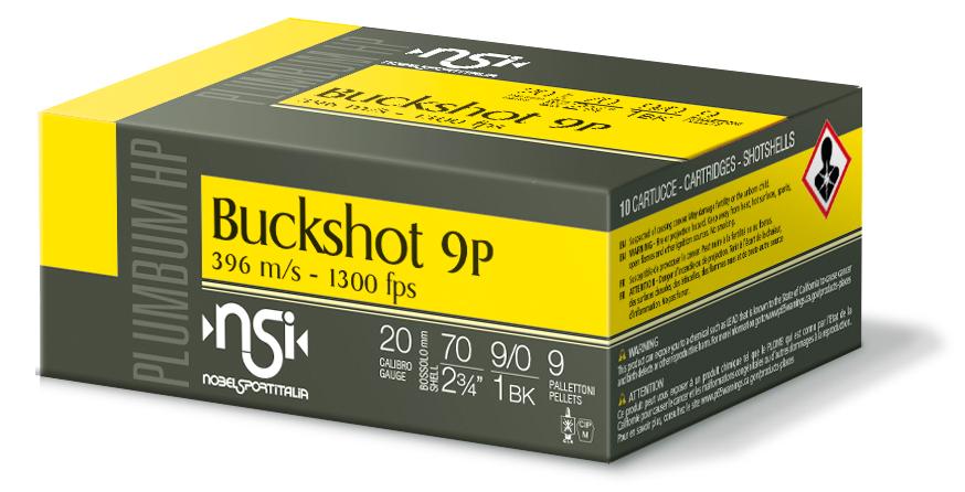 Noble Sport Plumbum Buckshot Shotshells 20 ga 2-3-4″ 9 pellet 1300 fps #1 10-ct
