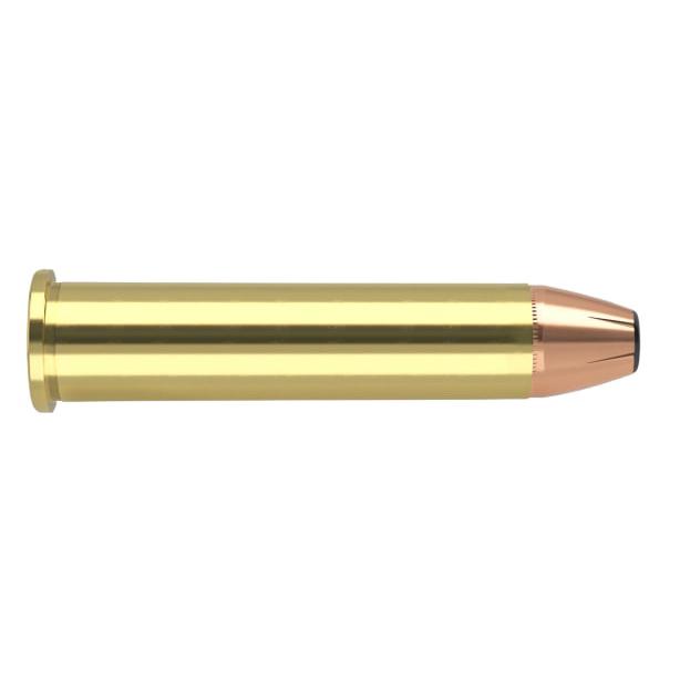 The Nosler Straight-Wall bullet is designed to exhibit consistent effective expansion at the slower impact velocities common to Straight-Wall cartridges. Utilizing a flat base thin jacket mouth and lead nose the Straight-Wall bullet reliably expands at ranges beyond which common bullets do not. The truncated nose profile ensures smooth feeding in all action types.